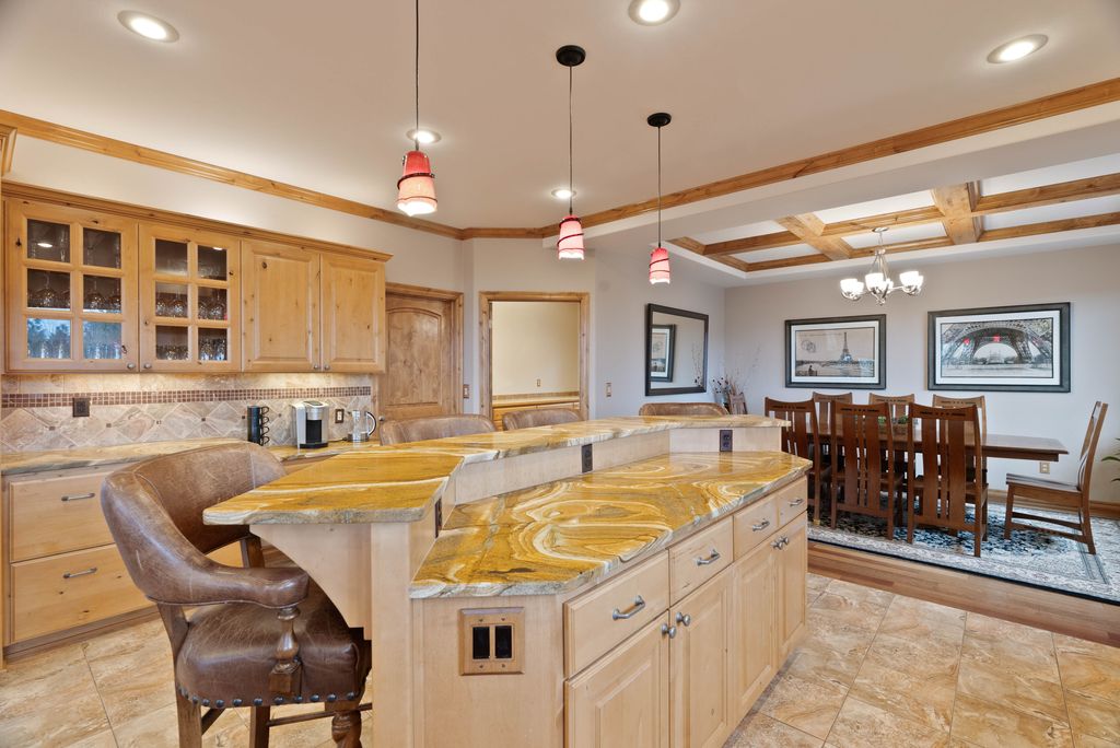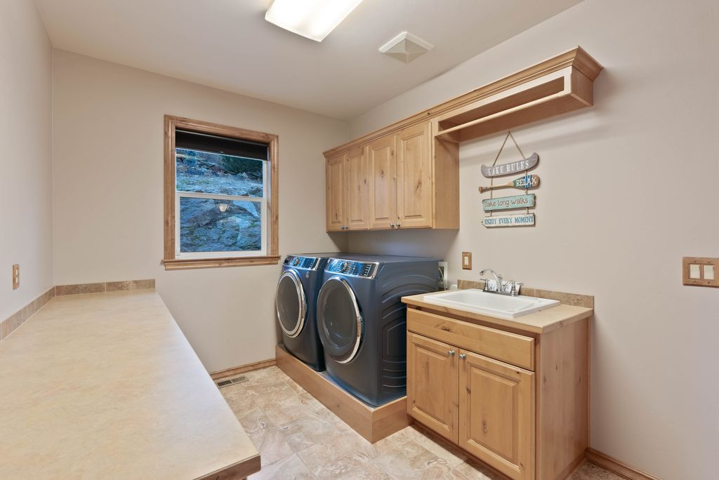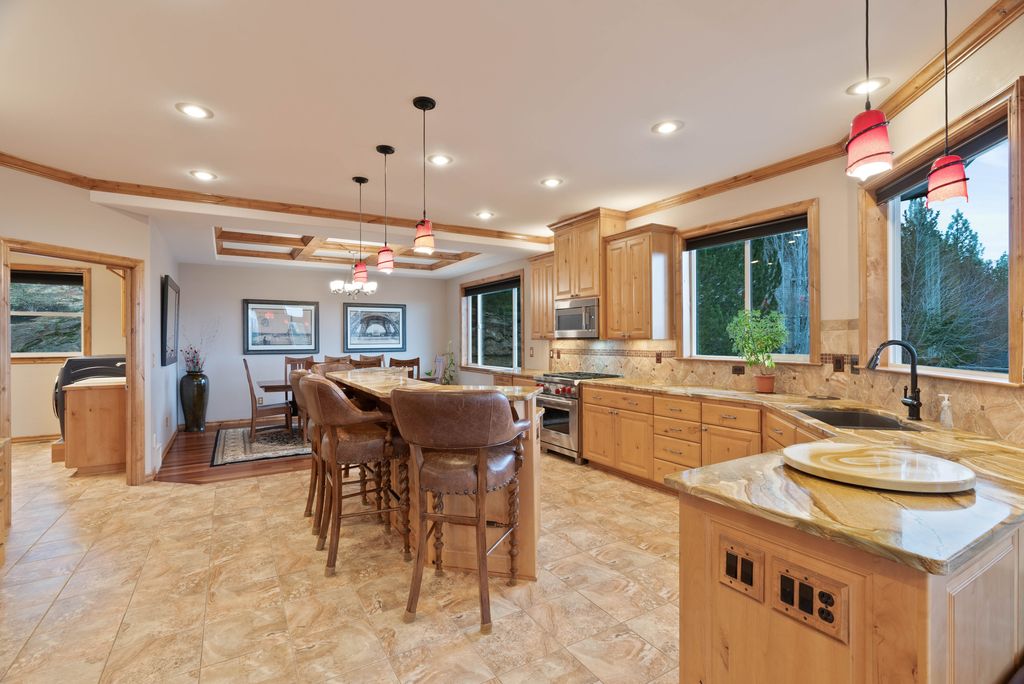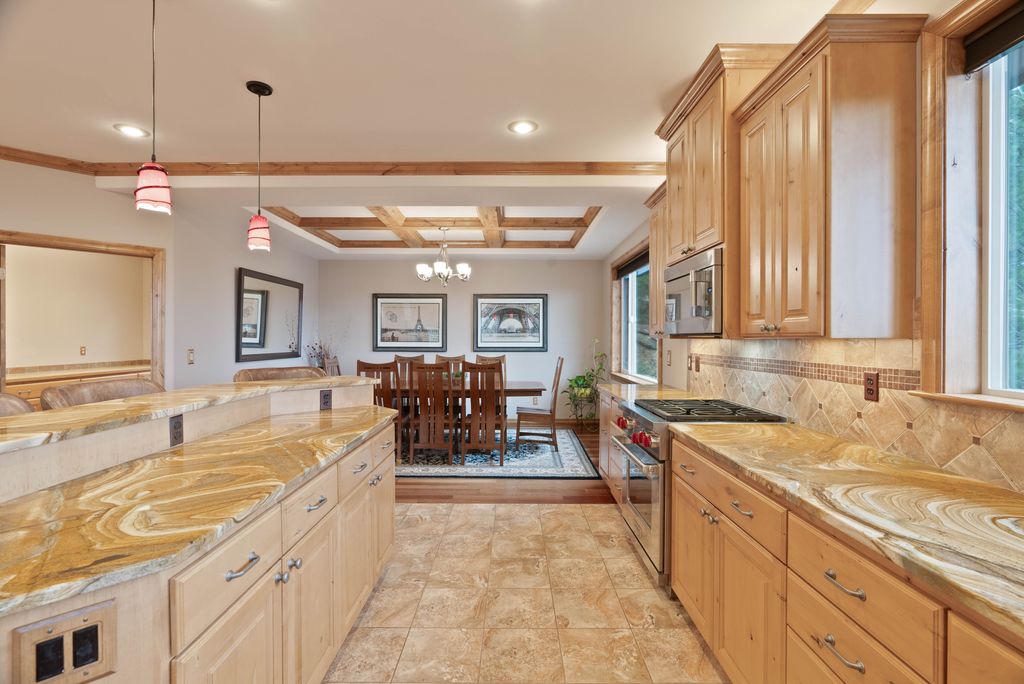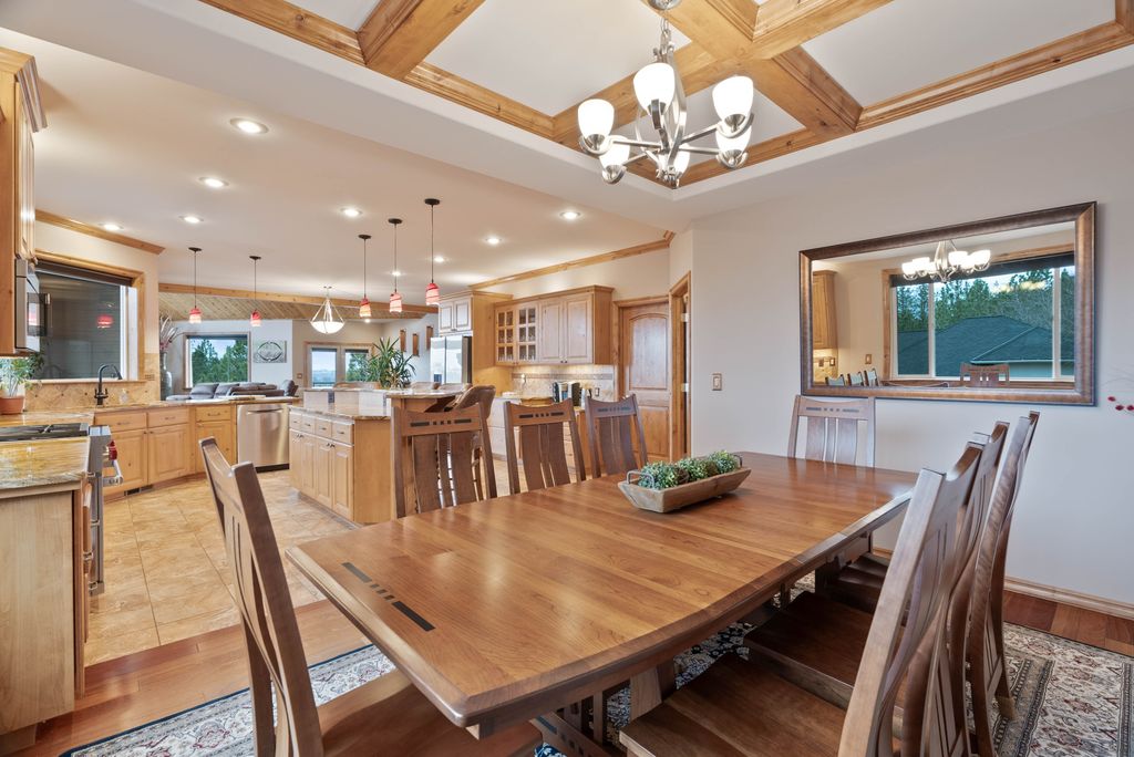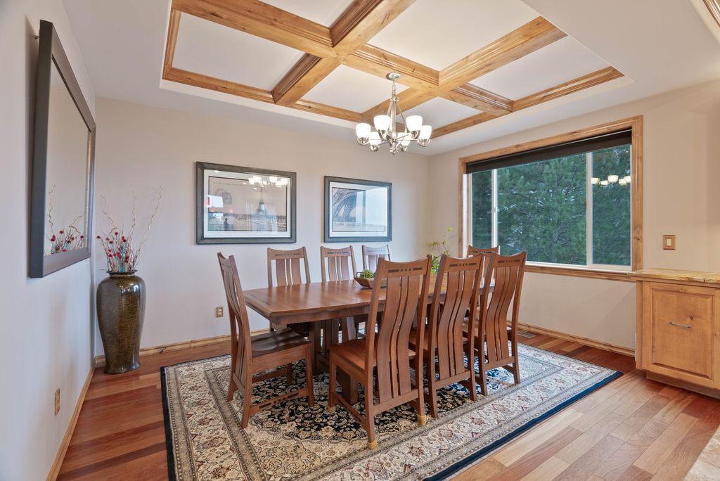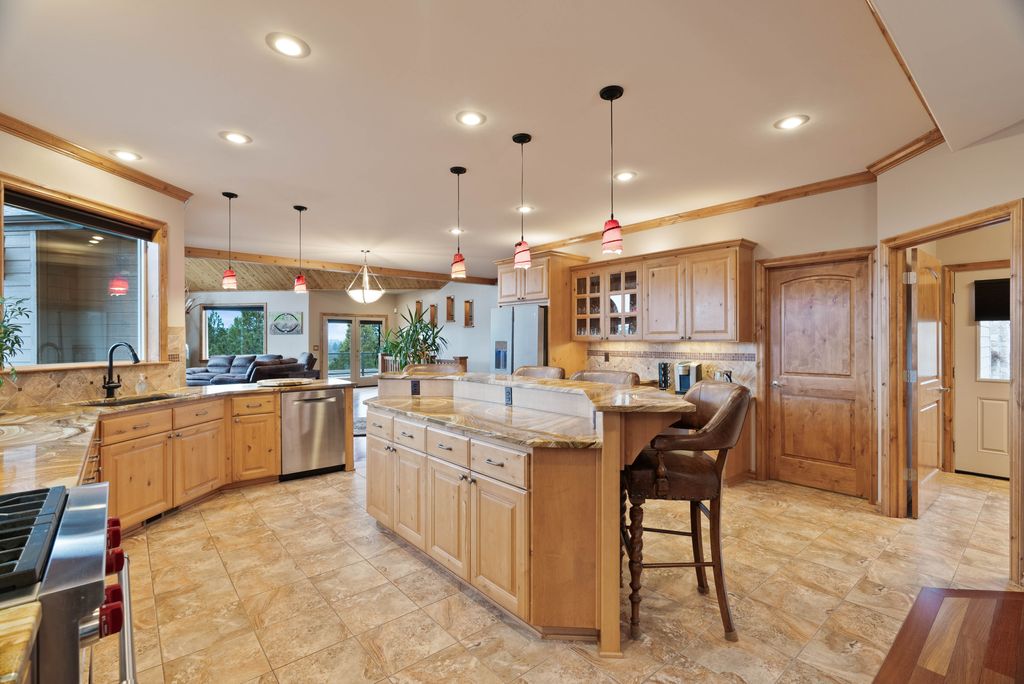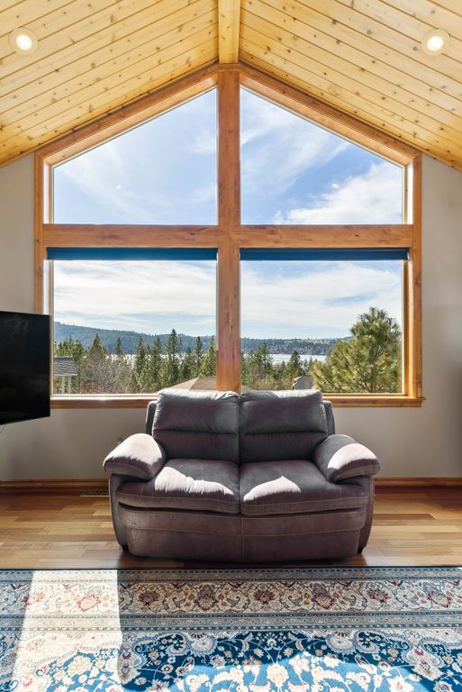 This custom-built home offers stunning vistas of Liberty Lake, Mica Peak, and golf courses. The updated kitchen features a Wolf range, refrigerator, mini-fridge, microwave, and quartz countertops. Architectural details like box beam ceilings, crown molding, cedar T&G ceilings, and Brazilian cherry floors make this home an entertainer’s dream. The spacious primary suite is a serene retreat with a large double-head shower, custom tile counters, and a walk-in closet. The lower level boasts two bedrooms, a bath,custom golf simulator room—perfect for leisure or practice, and access to a covered patio. The outdoor entertaining area includes a covered pergola, a fire pit, and expansive patios—perfect for enjoying summer barbecues and cozy eveningsall set against the stunning backdrop of Liberty Lake and golf course greens. Nestled in Liberty Lake, this home offers tranquility with convenient access to shopping, dining, recreation, and just 15 min. to Coeur d' Alene. Book your private showing today!