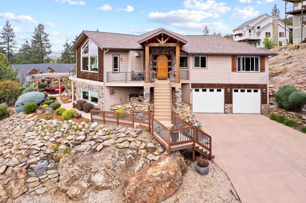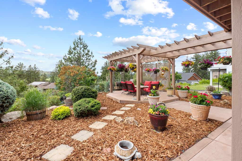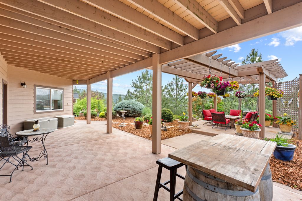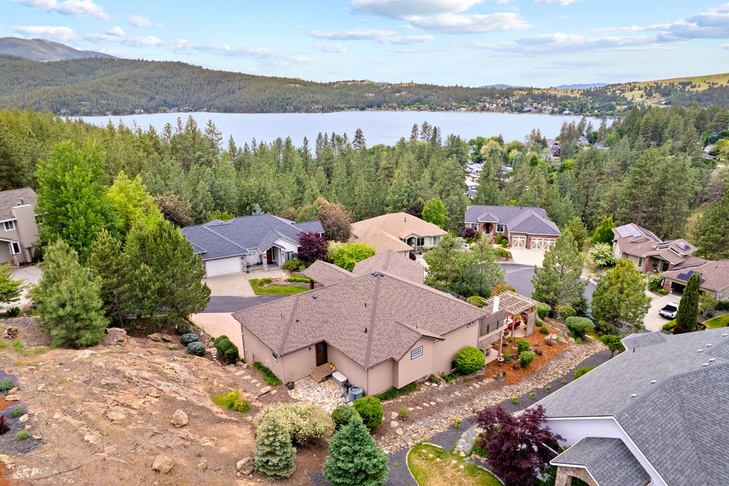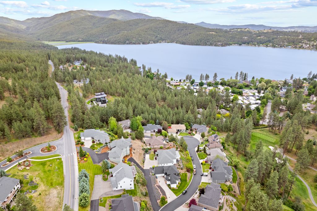 This custom-built home offers stunning vistas of Liberty Lake, Mica Peak, and golf courses. The updated kitchen features a Wolf range, refrigerator, mini-fridge, microwave, and quartz countertops. Architectural details like box beam ceilings, crown molding, cedar T&G ceilings, and Brazilian cherry floors make this home an entertainer’s dream. The spacious primary suite is a serene retreat with a large double-head shower, custom tile counters, and a walk-in closet. The lower level boasts two bedrooms, a bath,custom golf simulator room—perfect for leisure or practice, and access to a covered patio. The outdoor entertaining area includes a covered pergola, a fire pit, and expansive patios—perfect for enjoying summer barbecues and cozy eveningsall set against the stunning backdrop of Liberty Lake and golf course greens. Nestled in Liberty Lake, this home offers tranquility with convenient access to shopping, dining, recreation, and just 15 min. to Coeur d' Alene. Book your private showing today!