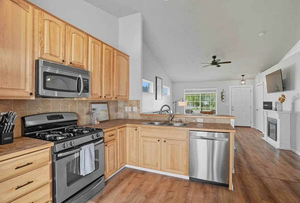 Single-level living on 5 Mile Prairie in the Mead School District- under $415K! Built in 2007 and smartly upgraded, this move-in ready home delivers even MORE value than typical new construction: stainless steel appliances, brand-new LVP flooring, high-end Hunter Douglas blinds, full vinyl fencing, and a complete sprinkler system. The kitchen opens to light-filled living and dining spaces, while the private backyard is mature and green with an extra large paver patio and gazebo. Enjoy the ease of true one-level living plus a low-maintenance yard in a sought-after North Spokane location. Priced to sell, this 5 Mile Prairie gem blends comfort, function, and value- close to parks and central to everything in the acclaimed Mead school district. See why smart buyers are choosing “move-in ready with upgrades included,” and then come see this impeccable home in person!