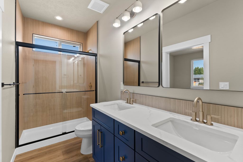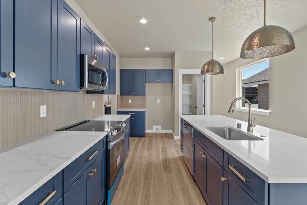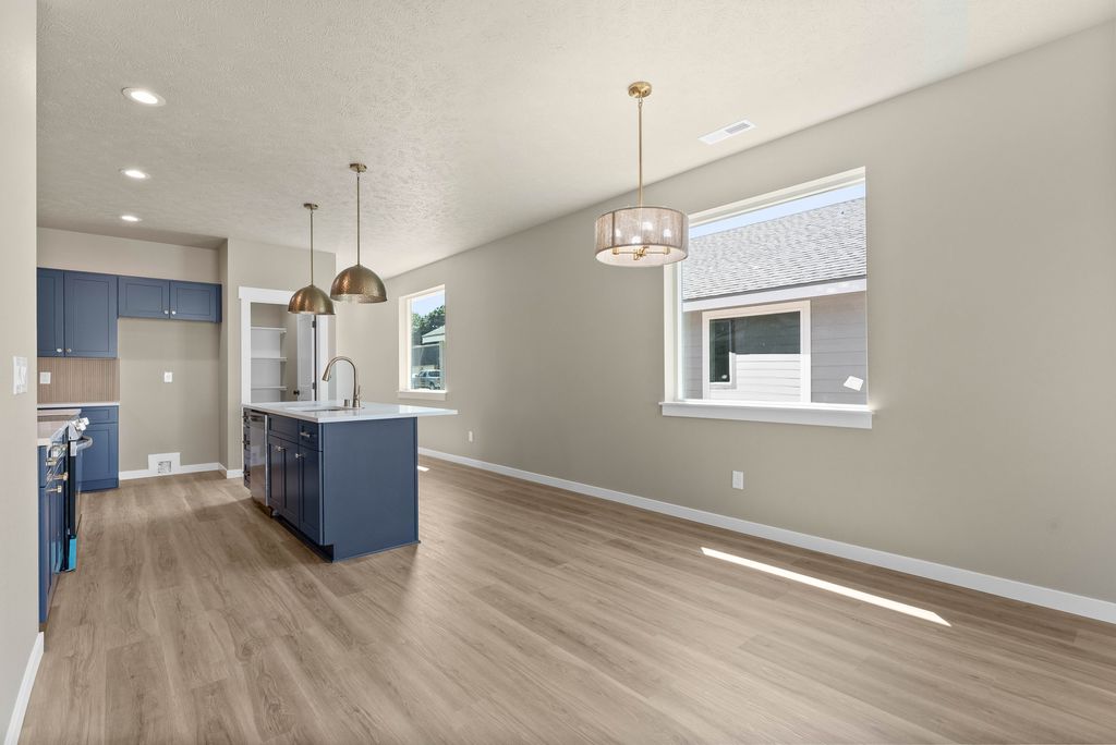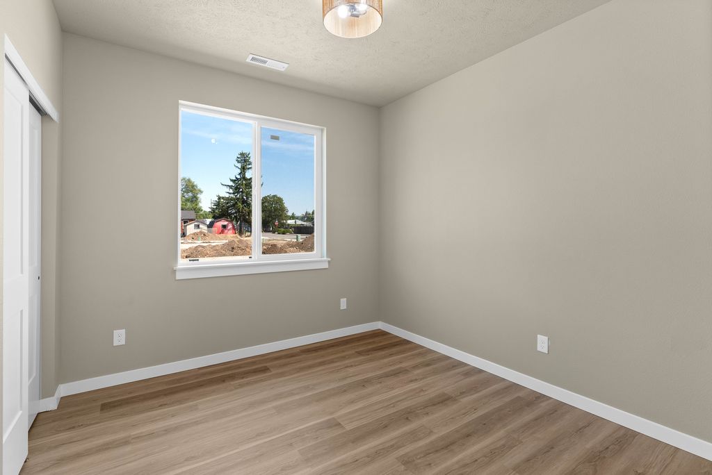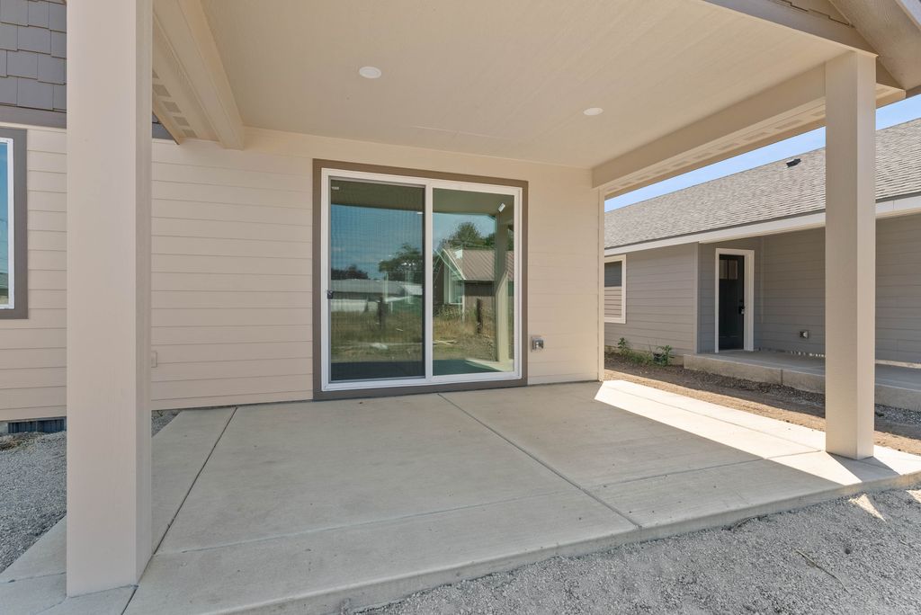 Complete & Move In Ready! Introducing the "Bowman." This stunning 1,494 sqft single-level home offers modern convenience and style. Featuring shaker cabinets, quartz countertops and stainless steel appliances in a spacious kitchen (+pantry) with a center island. Sit around the cozy electric fireplace in the living room. Primary bathroom has a large step-in tile shower. Enjoy comfort year-round with electric forced air, central AC, and a heat pump. The home showcases durable fiber cement siding, LVP flooring throughout, high ceilings in the large living and dining room, and a landscaped front yard. Large covered back porch. With an extra deep lot, 2-car garage, and Comcast internet available, this home is perfect for today's lifestyle. Plus, no HOA or CCR's means more flexibility!