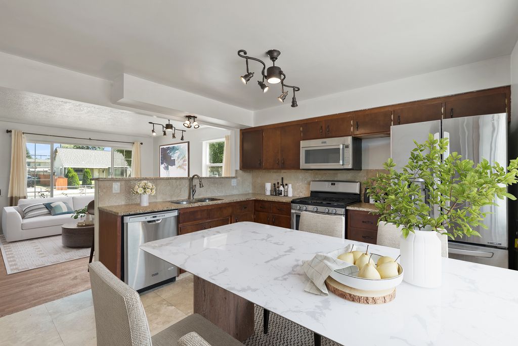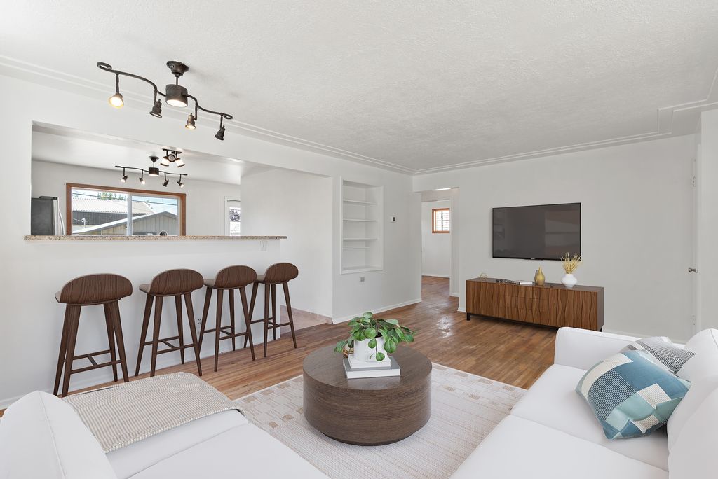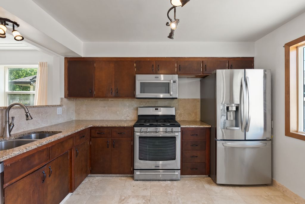 Charming home and investment opportunity! This 2 bed, 1 bath home offers 816 finished sq ft on the main floor with a bright living room and updated kitchen featuring stainless steel appliances, granite countertops, and a high-top bar. Central heating and air provide year-round comfort, and the roof was just replaced in 2024. The 772 sq ft unfinished basement offers instant equity potential with space to expand. Outside, enjoy a fully fenced backyard, alley access, and a 30' x 24' shop/garage for storage or hobbies. Don’t miss this one!