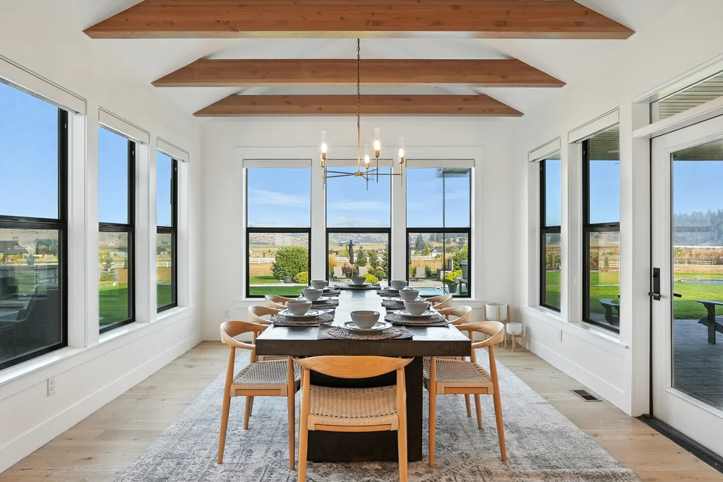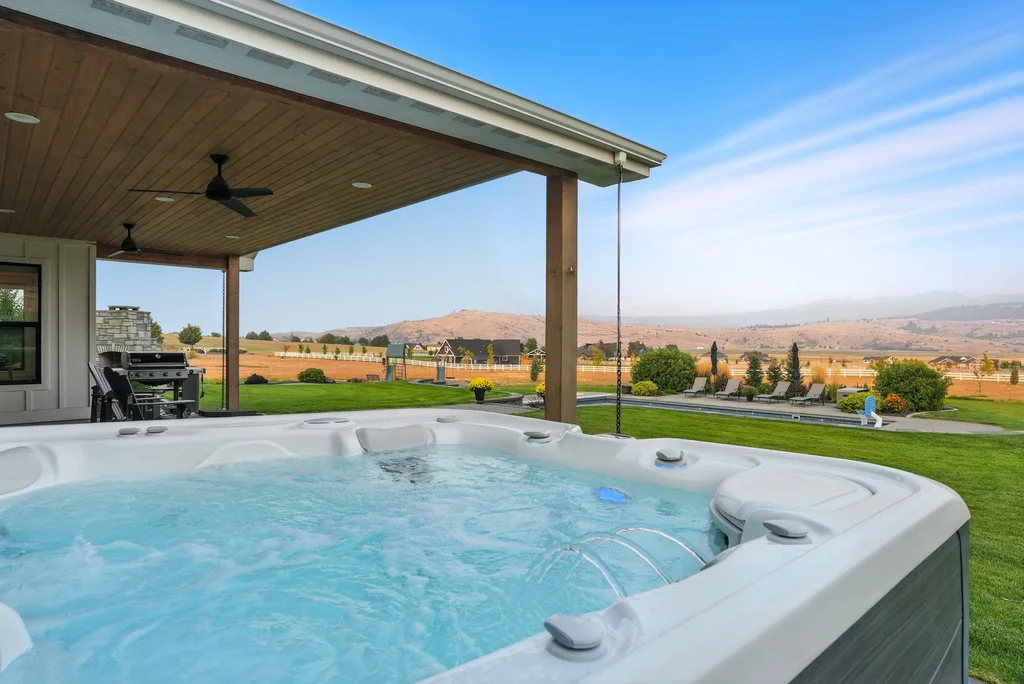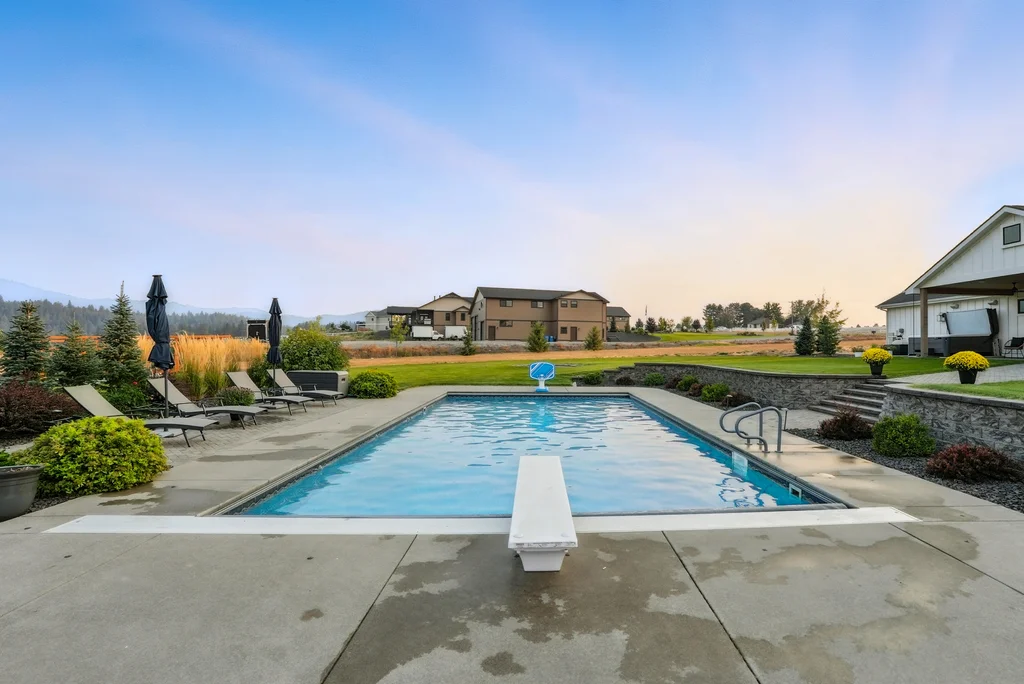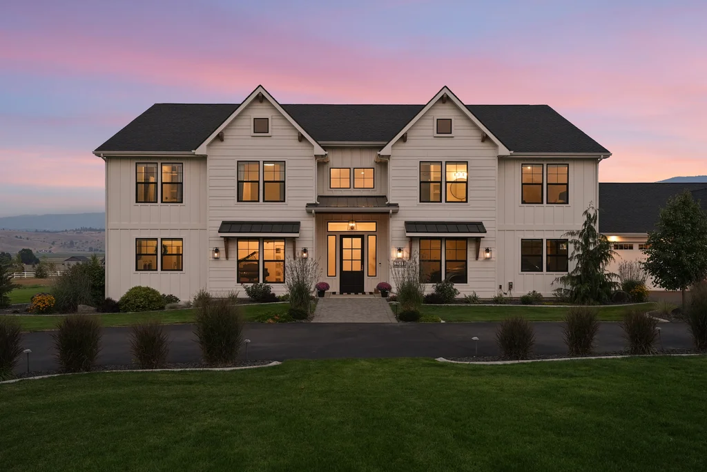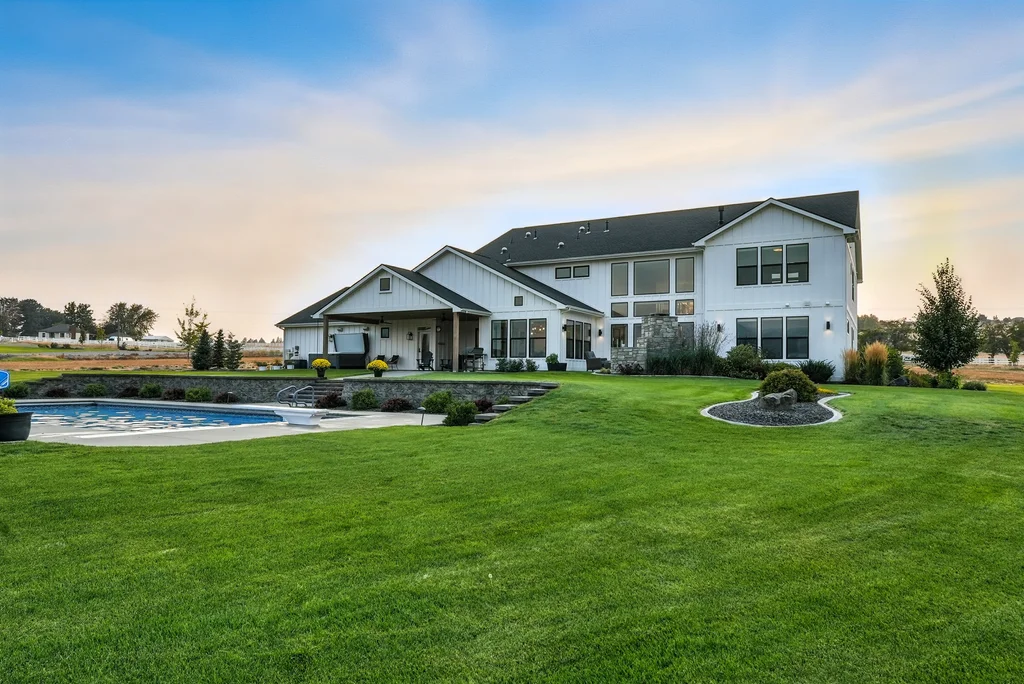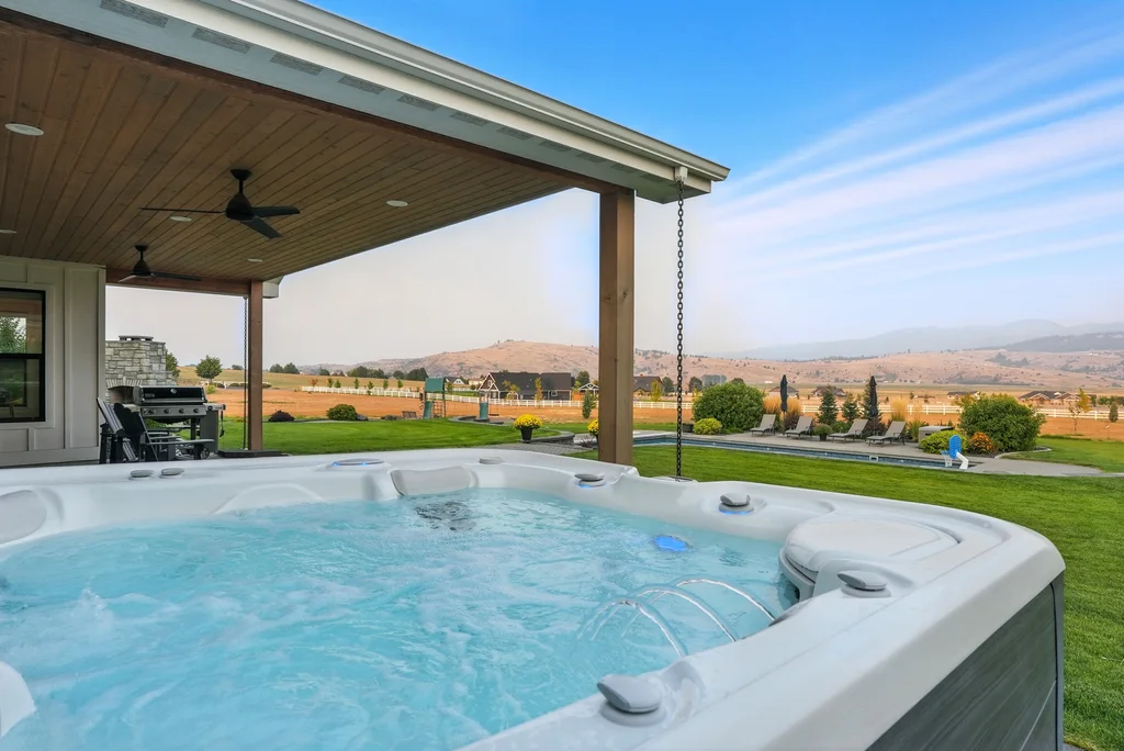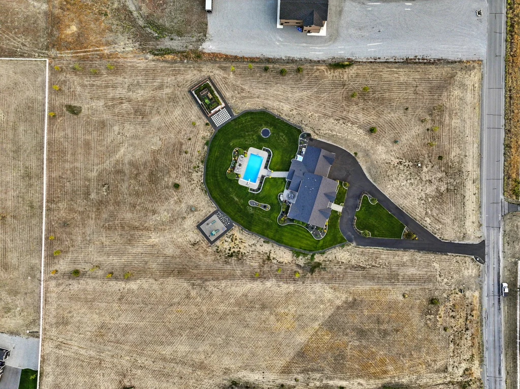 Located in sought-after Morrison Ranch, this casually elegant two-story modern farmhouse sits on five scenic acres with sweeping views of Mica Peak and the Saltese Wetlands. The open two-story great room features a dramatic floor-to-ceiling fireplace, abundant natural light, and a chef's kitchen with double islands, beautiful custom cabinetry, and high-end appliances. The main floor offers a luxurious primary suite, den/office or music room, huge pantry, and mud room/drop zone. The upper level includes a spacious family/game room, workout area, four additional bedrooms each with an adjacent bathroom. A fully finished 4+ garage offers room for 6 cars, workbench and abundant storage cabinets. The outdoor living spaces are equally impressive, showcasing expansive patios, custom fireplace w/pizza oven, a heated saltwater pool, in-ground trampoline, 30x50 fenced garden area, and a play area. This home blends comfort, style, and functionality in a spectacular setting.