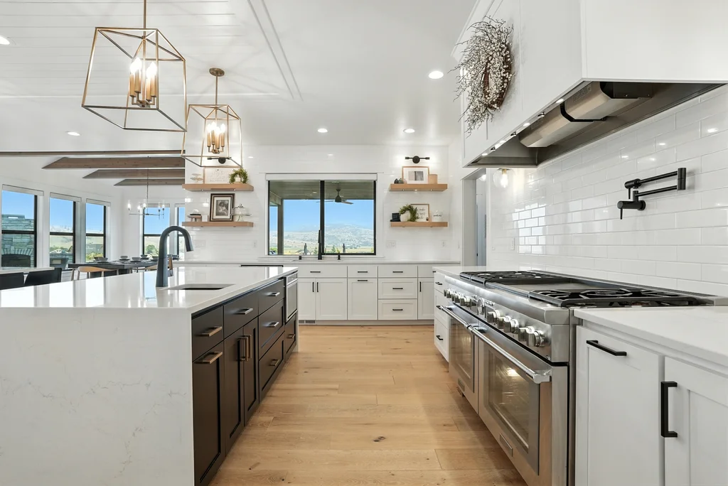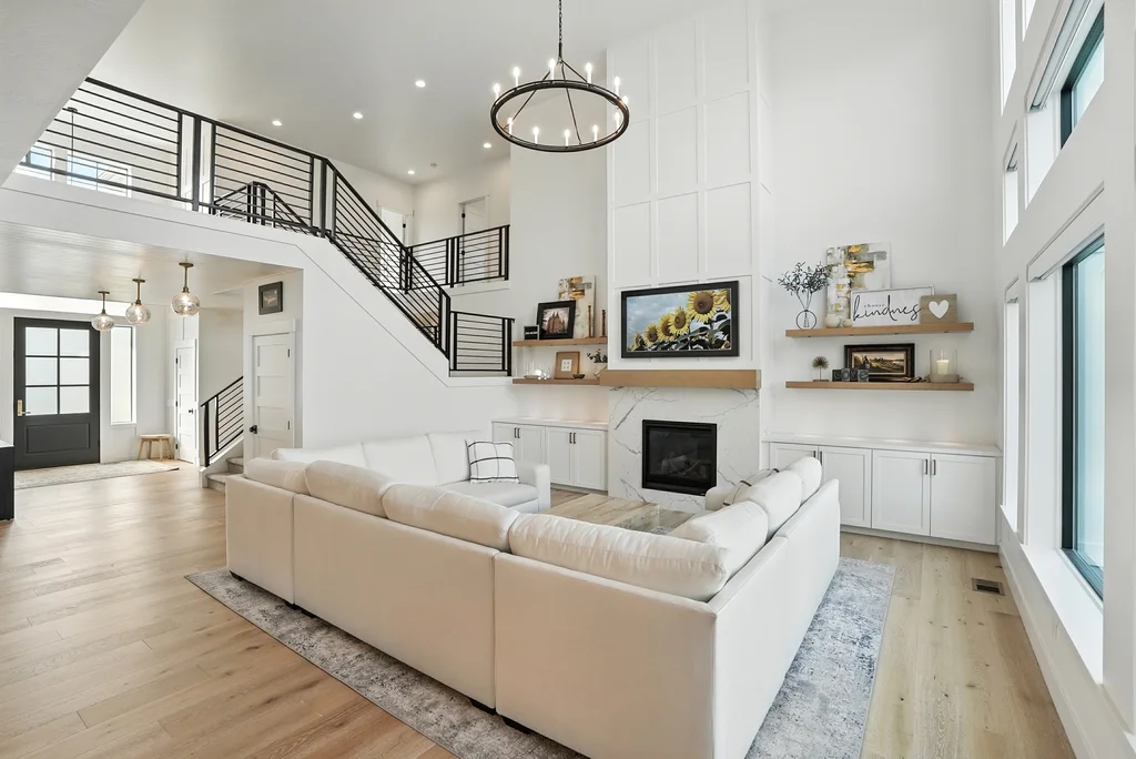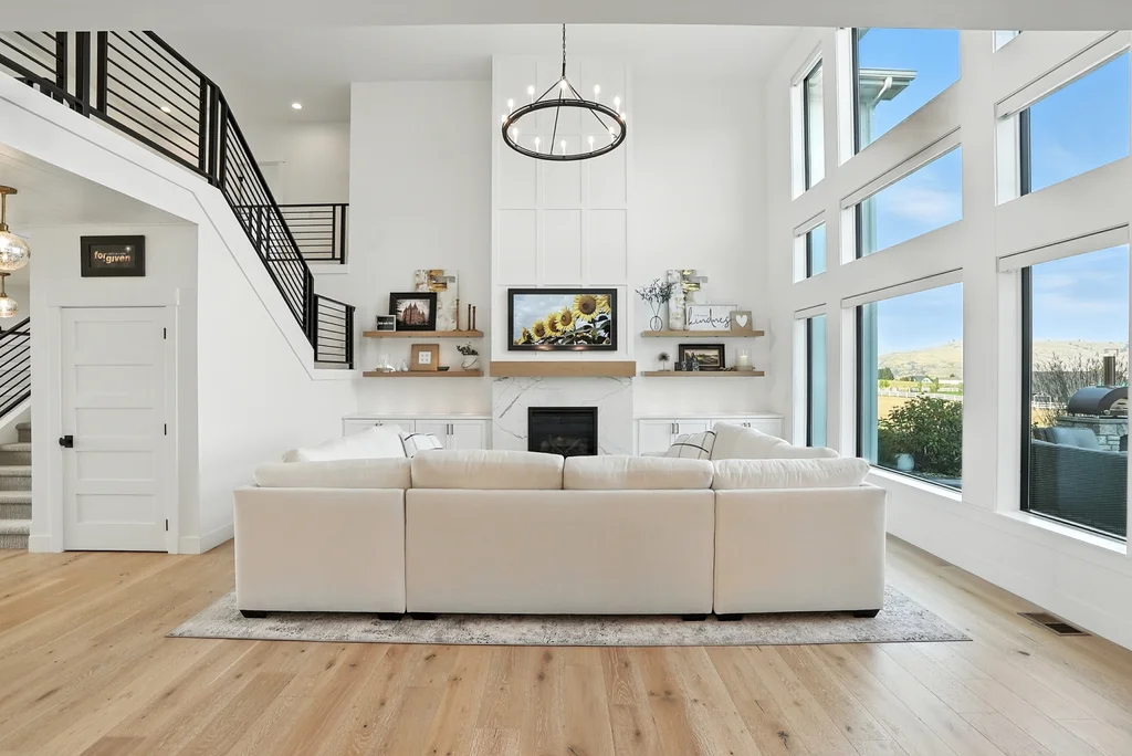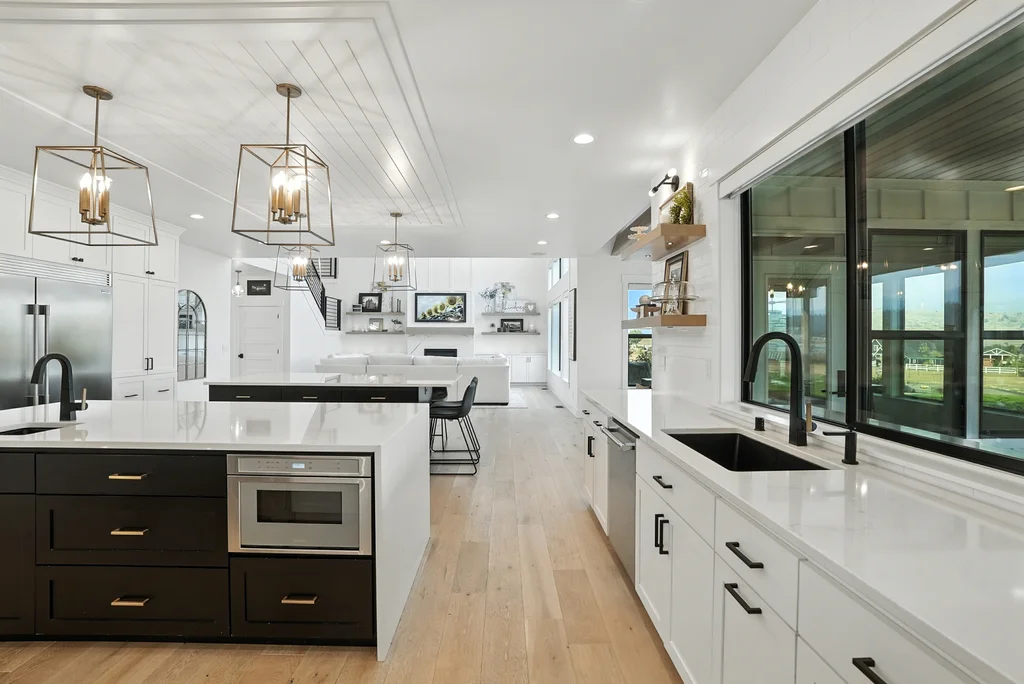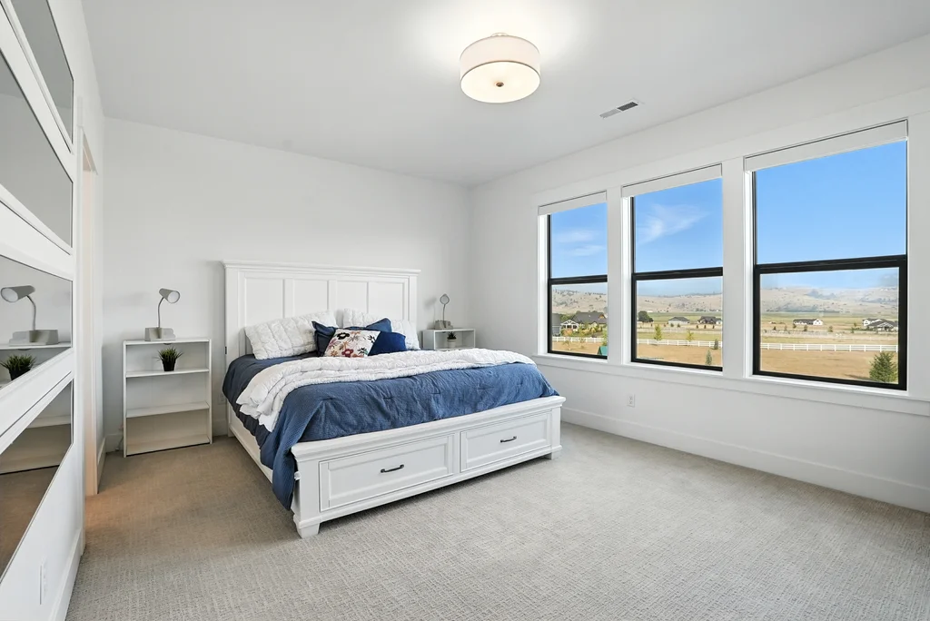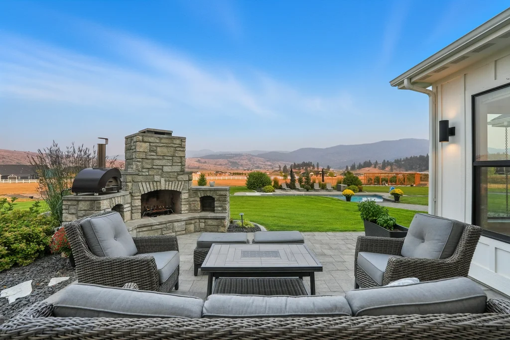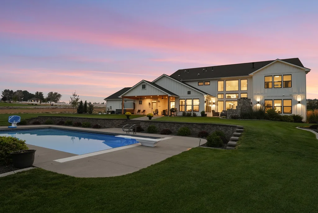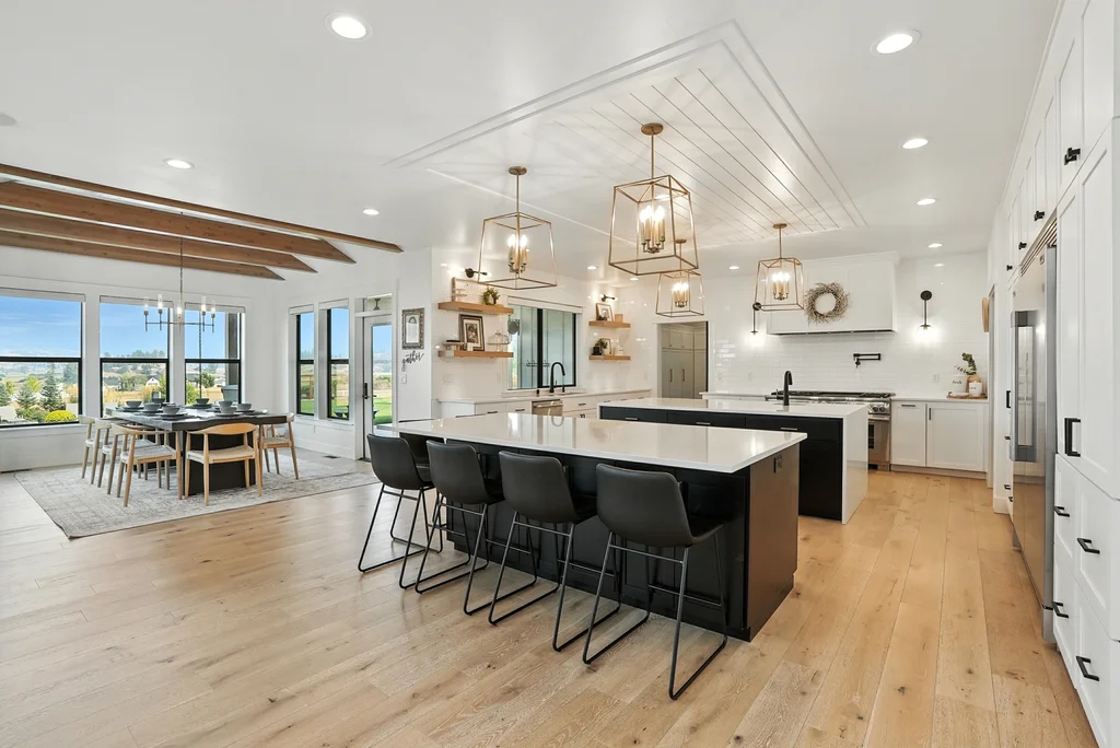 Located in sought-after Morrison Ranch, this casually elegant two-story modern farmhouse sits on five scenic acres with sweeping views of Mica Peak and the Saltese Wetlands. The open two-story great room features a dramatic floor-to-ceiling fireplace, abundant natural light, and a chef's kitchen with double islands, beautiful custom cabinetry, and high-end appliances. The main floor offers a luxurious primary suite, den/office or music room, huge pantry, and mud room/drop zone. The upper level includes a spacious family/game room, workout area, four additional bedrooms each with an adjacent bathroom. A fully finished 4+ garage offers room for 6 cars, workbench and abundant storage cabinets. The outdoor living spaces are equally impressive, showcasing expansive patios, custom fireplace w/pizza oven, a heated saltwater pool, in-ground trampoline, 30x50 fenced garden area, and a play area. This home blends comfort, style, and functionality in a spectacular setting.