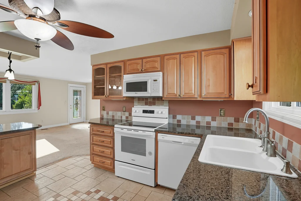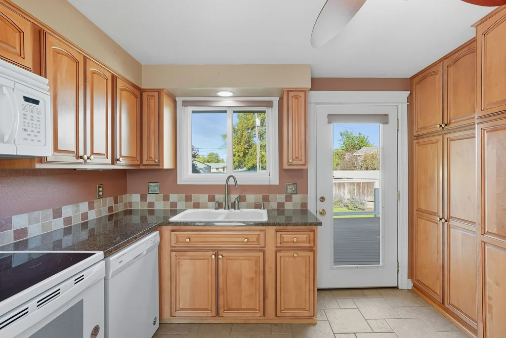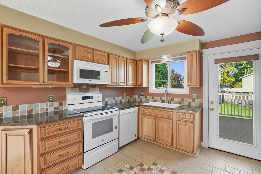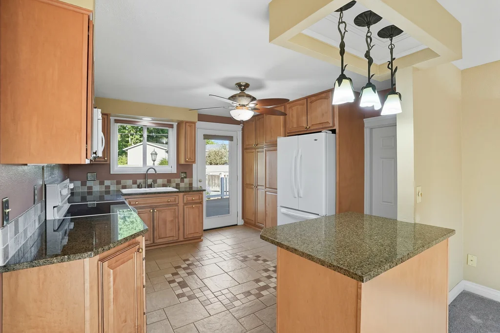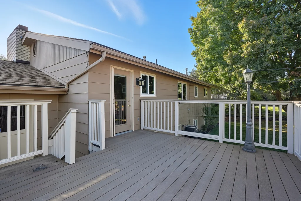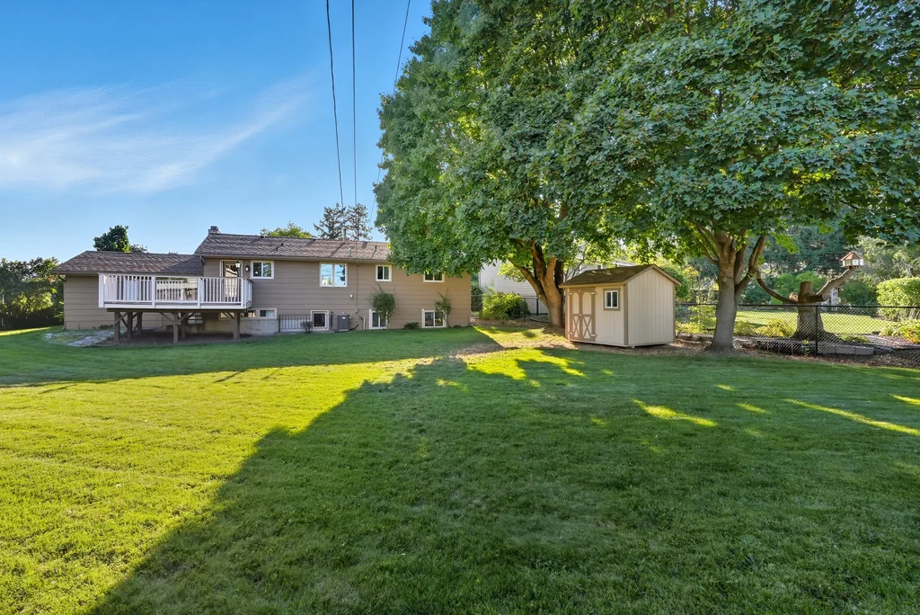 Fabulous turnkey rancher in Hamblen neighborhood. Huge lot. House is spotless and nothing to do but move in. Light and bright. The updated kitchen has newer appliances, granite countertops with eat at bar and tile flooring. Main floor features 3 bedrooms and 2 baths. The primary bedroom features a lovely ensuite bath. Large back deck off kitchen is perfect for entertaining. It overlooks a huge and private backyard. Great mature trees. Front yard has newly installed sprinklers and was recently hydroseeded. It looks great and will continue to improve in near future. Basement is fully finished and features family room with fireplace, 2 bedrooms (1 lacks legal window), an additional office/storage room, laundry with walk out to back yard and bathroom. The furnace and hot water are updated high efficiency appliances. The house has also been updated with energy efficient vinyl windows.