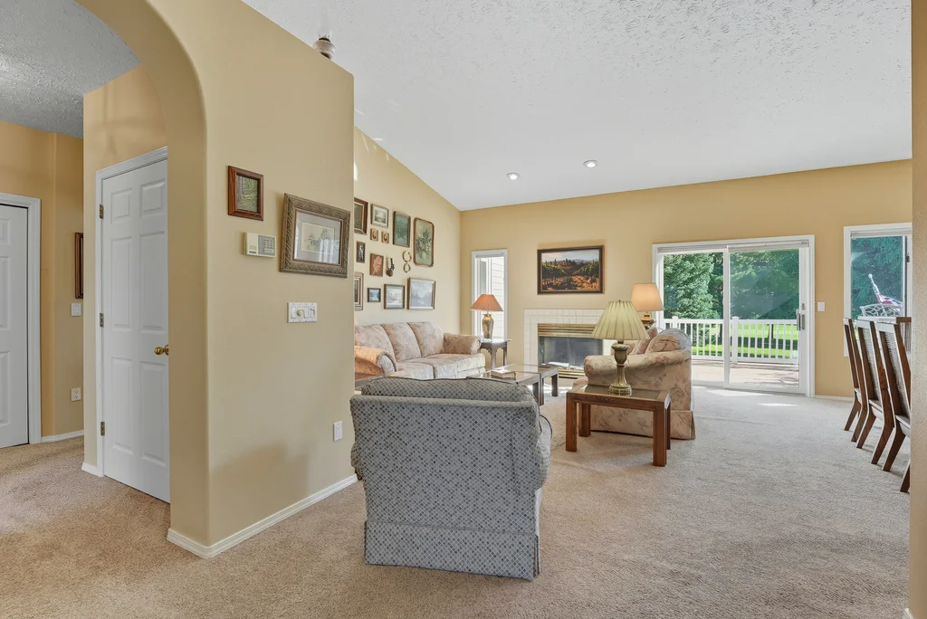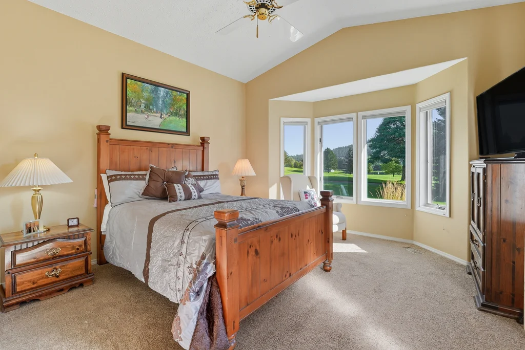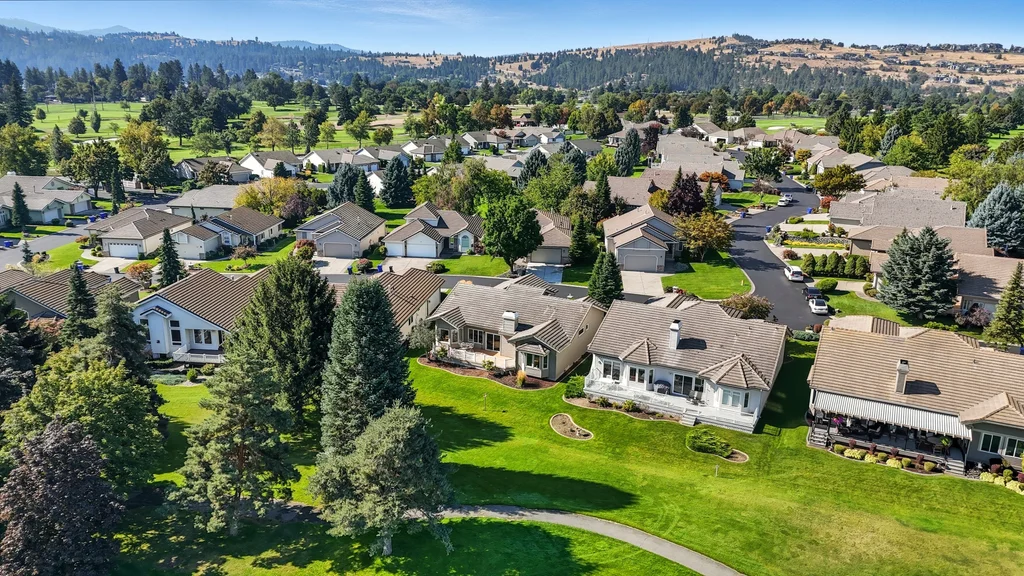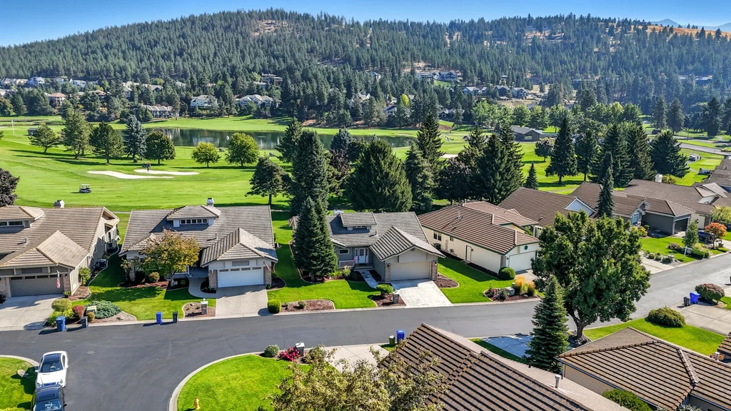 Experience Liberty Lake Golf Course Living at its finest in the highly sought after gated community The Villages. Perfectly situated on the 1st hole of MeadowWood Golf Course, this beautiful rancher offers breathtaking golf course and mountain views from your own backyard oasis. Enjoy a low-maintenance lifestyle where the work is done for you, allowing more time to take advantage of everything Liberty Lake has to offer three golf courses, community events, miles of walking/biking trails, and the Centennial Trail just minutes away. Inside, you’ll find large view windows that flood the home with natural light, a spacious main floor primary suite, a welcoming formal living room, and a versatile main floor den/office. Step outside to a private patio with mature landscaping, the perfect spot to entertain or simply relax and enjoy the scenery. All appliances stay, making this home move-in ready. With quick freeway access, plus nearby shops, restaurants, and parks. Come live the dream lifestyle in Liberty Lake
