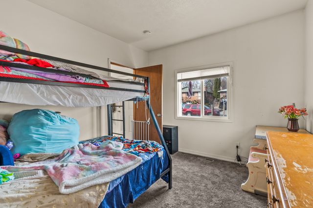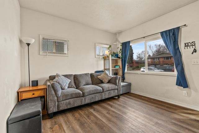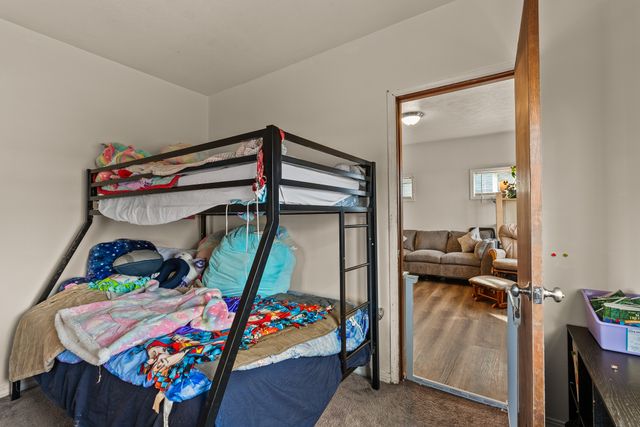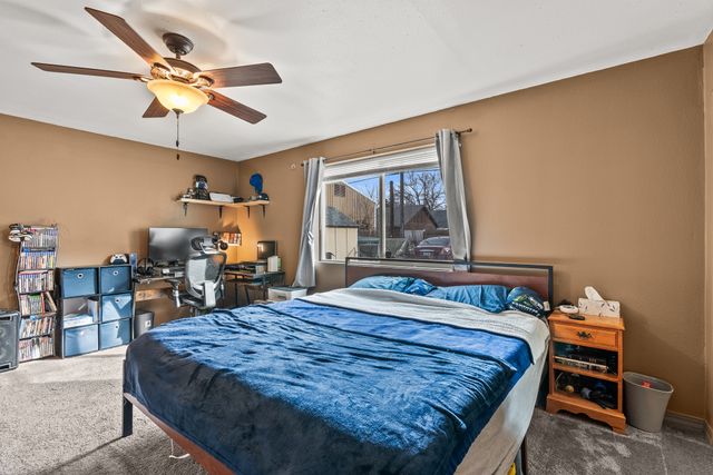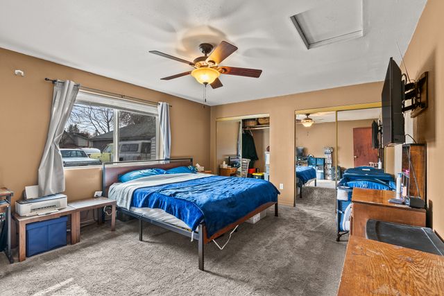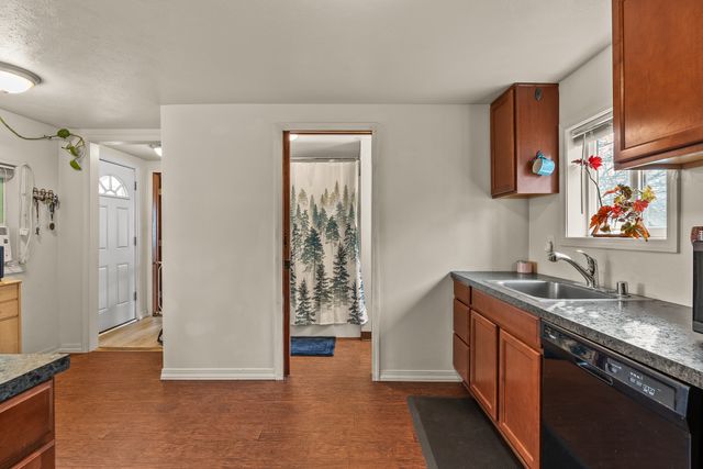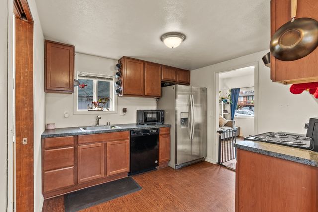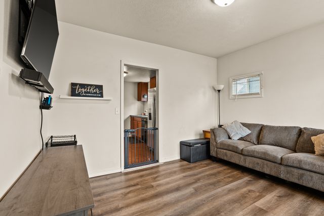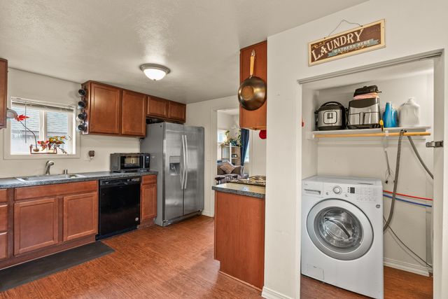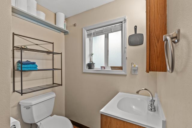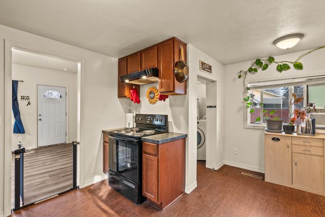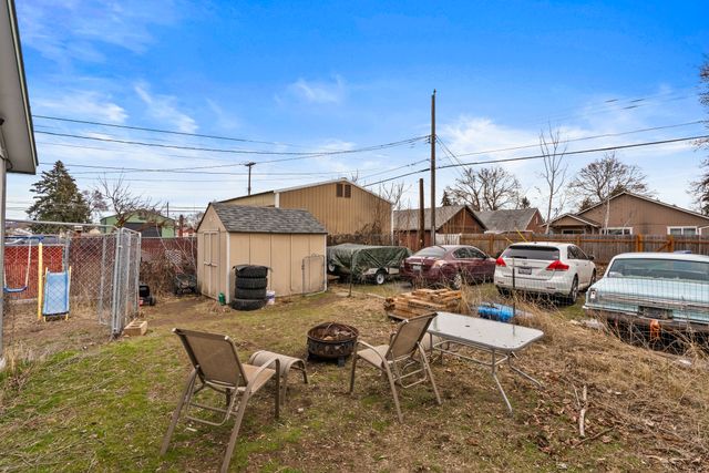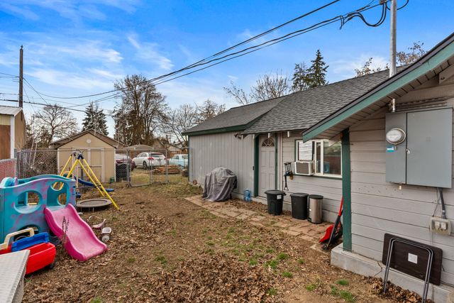 Welcome to this charming one-level home, perfect for easy living! This cozy property features 2 bedrooms, 1 bathroom, and convenient main floor utilities, along with a spacious eat-in kitchen. The oversized primary bedroom offers double closets and a ceiling fan for added comfort. The basement, accessible via an outdoor entrance, includes the electric forced air furnace and additional storage space. The large lot provides plenty of room to add a garage or workshop, along with ample off-street parking and alley access for your cars and toys. Centrally located with quick access to nearby amenities like Trader Joe's. Schedule a showing with your agent today or reach out to the listing agent for a private tour.