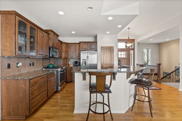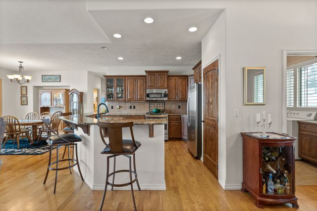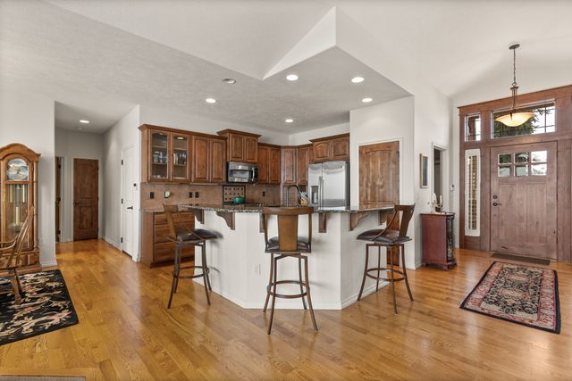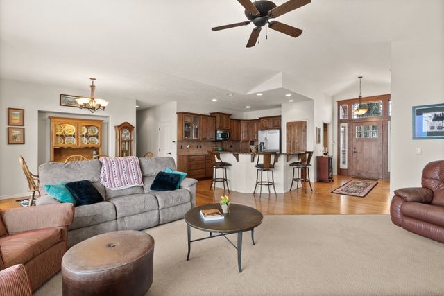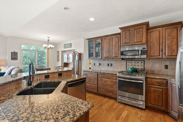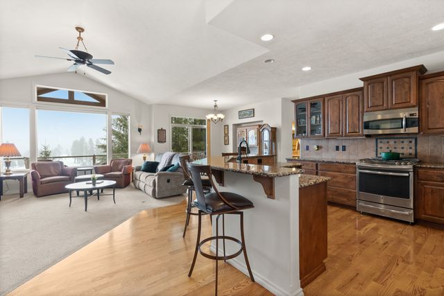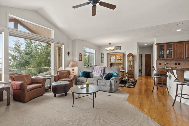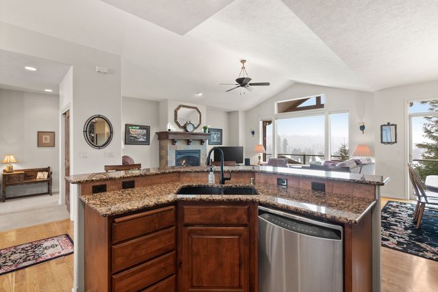 Discover luxury living in this immaculate one-owner home, perfectly positioned above Wandermere Golf Course with breathtaking, unobstructed views of the lake and first hole. Designed for comfort and elegance, this 4-bedroom, 3- full bathroom retreat boasts an open layout, vaulted ceilings, and high-end finishes throughout, including granite countertops, stainless steel appliances, and two cozy gas fireplaces. Entertain with ease from the expansive back deck, where serene views provide a stunning backdrop, or unwind on the patio, already plumbed for a hot tub. The thoughtfully designed floor plan ensures effortless main-level, zero-step living. For golf enthusiasts, the dedicated golf cart garage with direct drive-out access means you’re just minutes from the course—an amenity that’s both rare and highly coveted. This 55+ community provides low-maintenance luxury, panoramic views, and direct access to one of Spokane’s finest golf course. Don’t miss this incredible opportunity! Schedule a showing today!